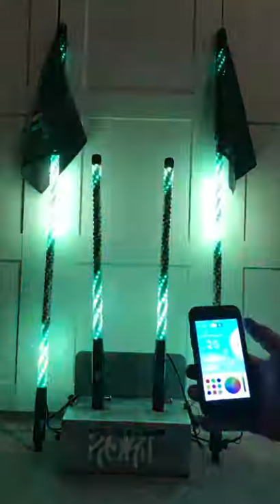 Pair of ROKIT Gen3 4FT LED Bluetooth and Remote Lighted whips!
