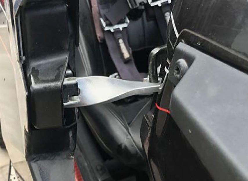 Easy-Cool door latches are installed between the stock loop of the cab and the door latch. This part keeps doors open approximately 3.5” compared to closed position. With the extra opening, fresh air comes into the cab of the vehicle while in motion which circulates airflow and cools driver and passengers. The Easy-Cool door latch allows the doors to remain solid during the riding experience and stay inside the body lines of the machine.