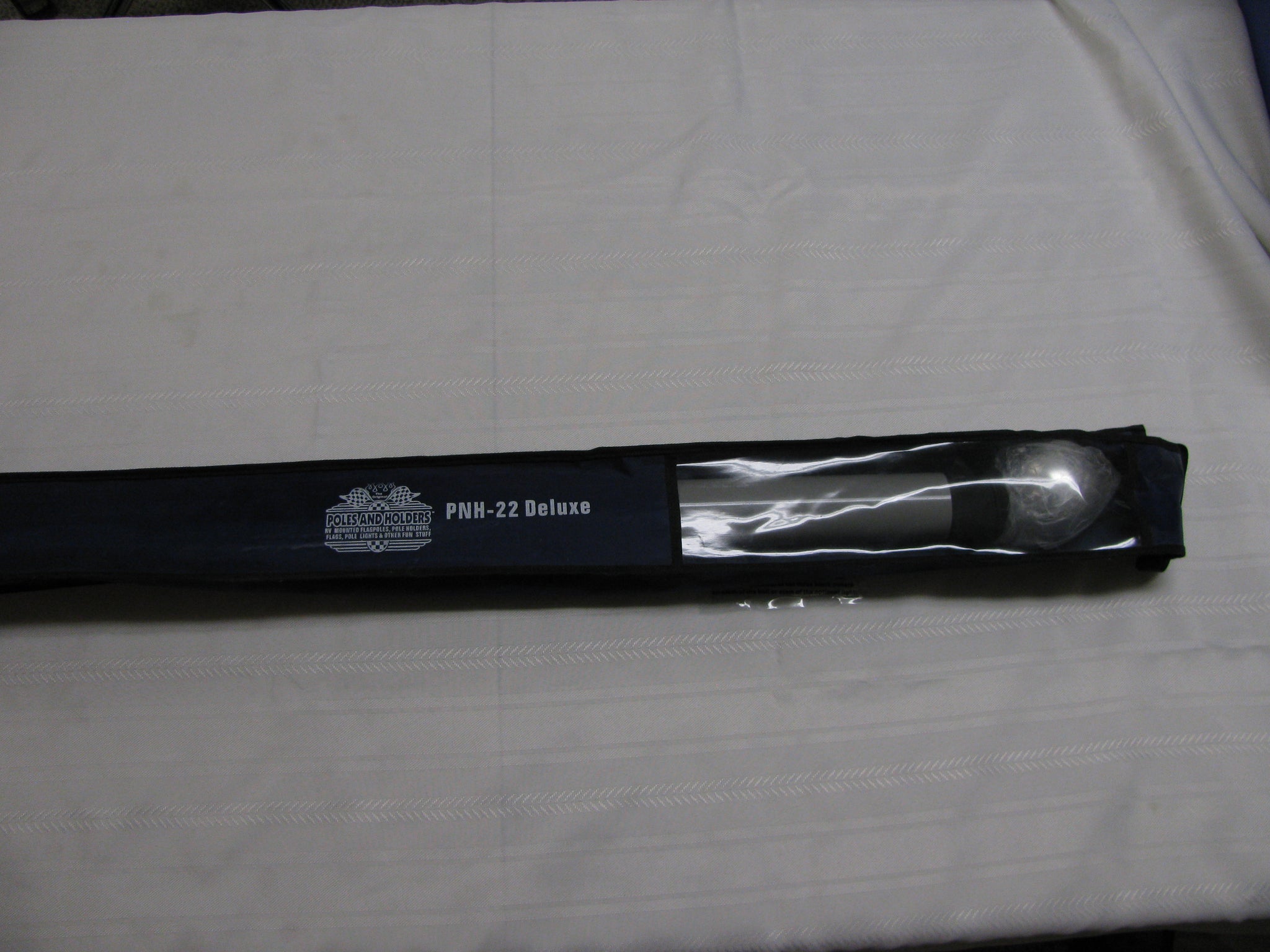 22' telescope pole is made of fiberglass and collapses down to 4' tall. It includes clips to hold 2 flags and comes in a nice carrying bag. Great way for your friends and family to find your camp and for yourself to find camp a little easier when you're coming back from a nice ride.