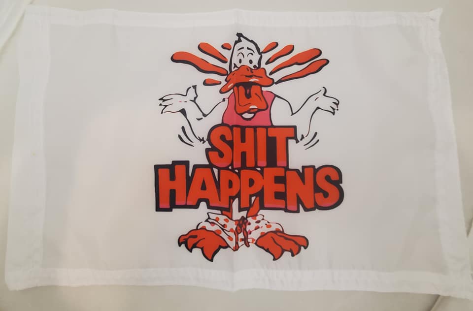 DuneRats® 12"x18" Shit Happens ATV, UTV, MC Safety Whip Flag with Sleeve
